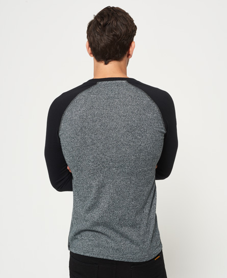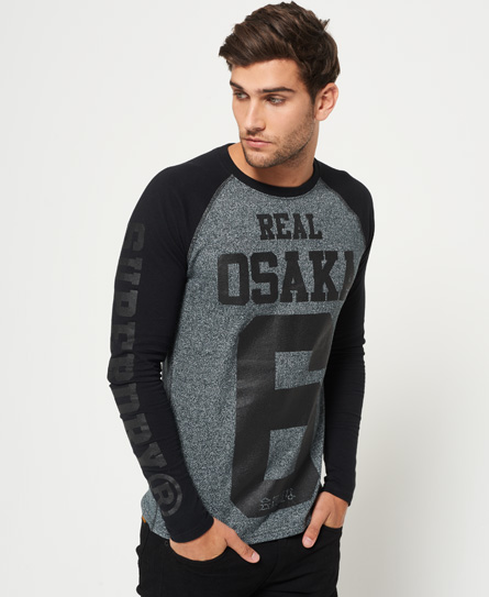 Superdry men's Real Osaka 6 Raglan t-shirt. The iconic Osaka 6 logo features on this long-sleeved baseball style t-shirt. The prominent logo has a textured rubber print. There is also a Superdry print on the right sleeve in a textured print. Model wears: Medium Model height: 6’ 2” (188cm) Model chest size: 37" (93cm)True to size