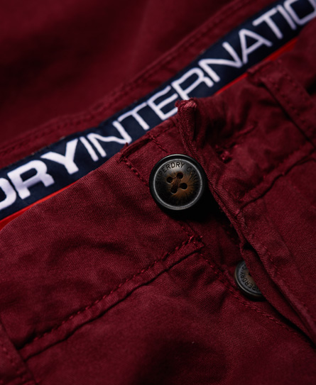 Superdry men's International chino shorts. These chino shorts feature four pockets and a button fastening. The International chino shorts are finished with Superdry logo patches on the front and back pockets.Model wears: 32/32 Model height: 6’ 1” (185cm)