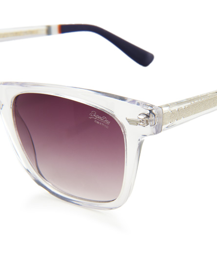 Superdry premium handcrafted San sunglasses. Vintage inspired sunglasses, handcrafted from premium acetate material, come with laser branding on the top of the frame and a small Superdry logo printed in the corner of one lens. The frames are produced by cutting the front & temple shapes from raw acetate material, and given their shape through several stages of hand bevelling, tumbling & polishing to achieve a high quality, premium finish. The sunglasses also come with metal detailing on both sides of the lenses and is finished with quad colour injection rubber tips that are individually hand applied for trend and comfort Lens category – Optical class 1, with highest quality optical properties. UV rating – UV400, providing protection against UVA and UVB rays. Filter category – Category 3, providing high protection against sunglare ISO 7000-2950.