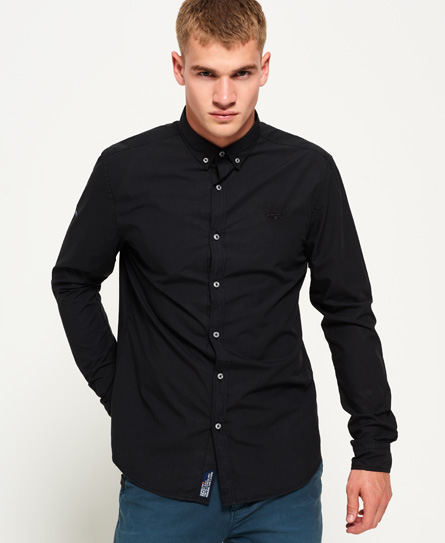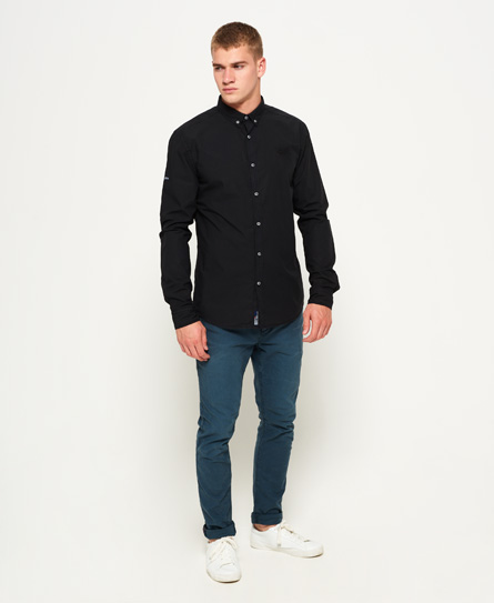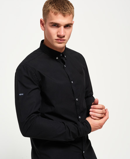 Superdry men's Premium Paperweight shirt. A long sleeve button down shirt with button cuffs, featuring an embroidered Superdry logo on the chest. The shirt is finished with a Superdry logo side seam dart. Model wears: Medium Model height: 6’ 1” (185cm) Model chest size: 39" (99cm)