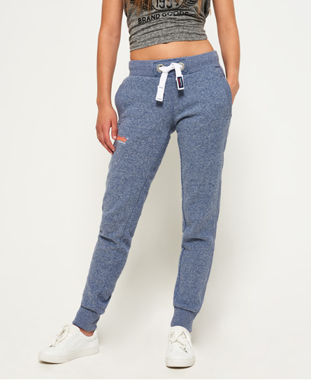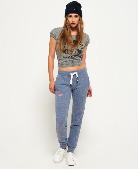 Superdry women's slim joggers from the Orange Label range. These classic slim leg, cuffed joggers feature an elasticated waistband with a drawcord fastening, three pockets and are finished with an embroidered Superdry logo on the right thigh and Superdry logo tab on the back pocket. Model wears: 28/32 Model height: 5’ 10” (177cm)