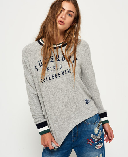Superdry women’s Brentwood Sweater. This soft touch sweater features a crew neck ribbed contrast colour neckline and cuffs. Finished with an embroidered Superdry logo across the chest.