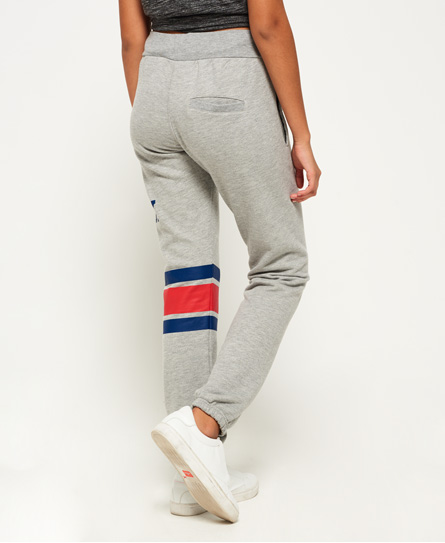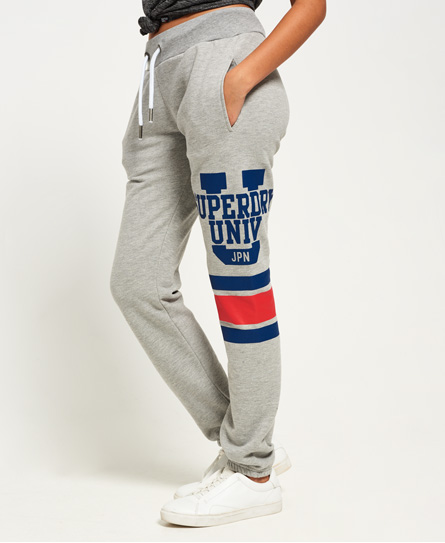 Superdry women’s Semester joggers. These stylish semester drawstring joggers feature an elasticated waistband, cuffed ankles, two front pockets and one back pocket. The joggers are finished with a Superdry graphic logo on one leg front and back. Model wears: Small Model height: 5’ 10” (175cm) Model chest size: 32" (81cm)