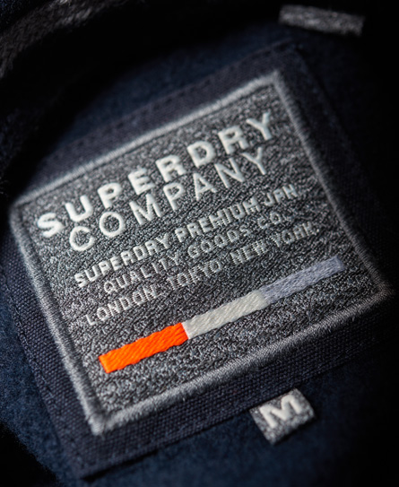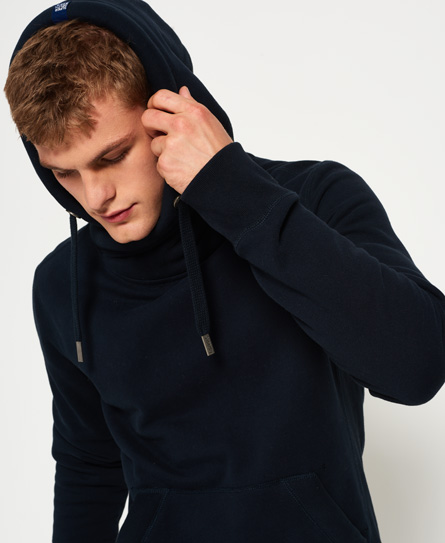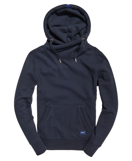 Superdry men’s crossover hoodie. This crossover hoodie features a unique crossover thick collar hood, perfect to keep warm this season. The hoodie features Superdry logo metal detailing on the drawstring and metal eyelets. The crossover hoodie also features one front pouch pocket and ribbed panel sides. The hoodie is finished with a Superdry badge near the hem.