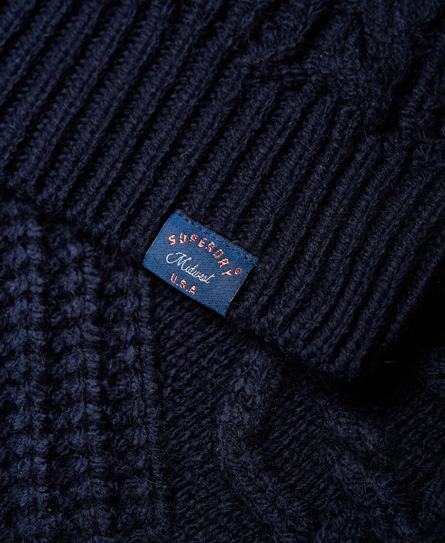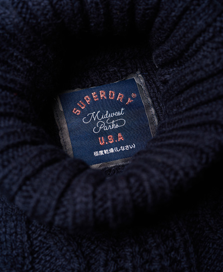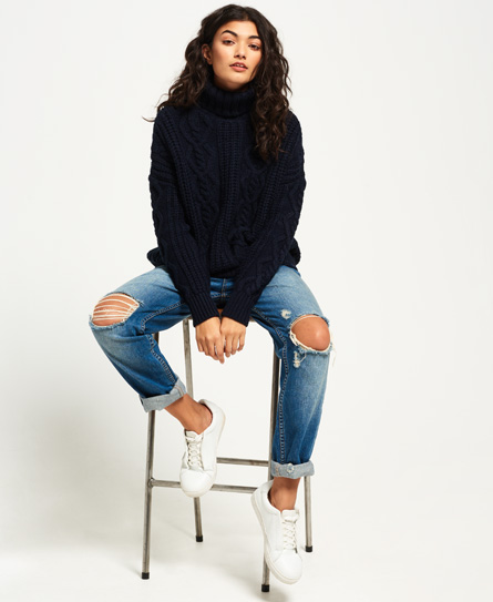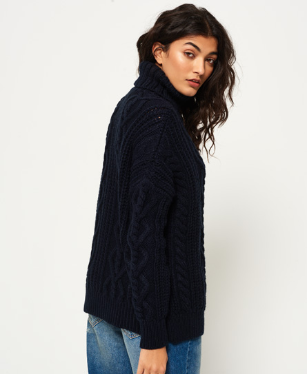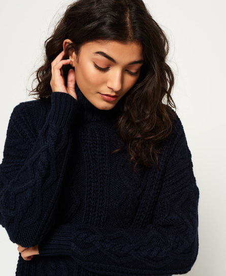 Superdry women’s Esmay Cable Knit Jumper. This cosy jumper is perfect for keeping warm this season. Featuring a roll neckline, ribbed cuffs and a ribbed hem this jumper is finished off with a Superdry logo tab on the hem.