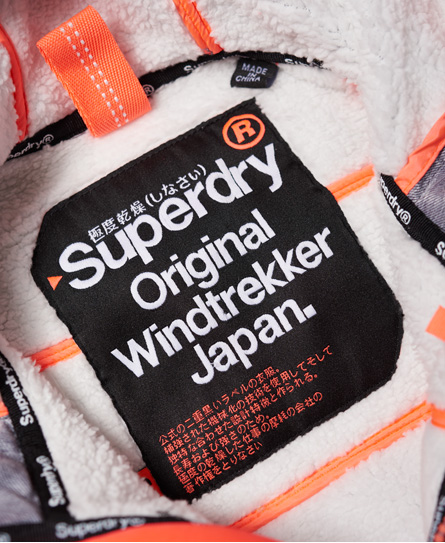 Superdry women’s hooded Sherpa Windtrekker jacket. Part of the iconic wind family and inspired by technical hiking wear, the Sherpa Windtrekker is a soft-shell, lightweight jacket designed not only for practicality but also to keep you warm. Featuring a two-way zip fastening and three zipped front pockets as well as a bungee cord hem and collar, the jacket is also fully Sherpa lined. The cuffs are adjustable with hook & loop straps. Inside, the jacket has a headphone cable eyelet in the chest pocket. The Windtrekker jacket is finished with embroidered Superdry logos and branded zip toggles. Model wears: Small Model height: 5’ 10” (178cm) Model chest size: 34" (81cm)