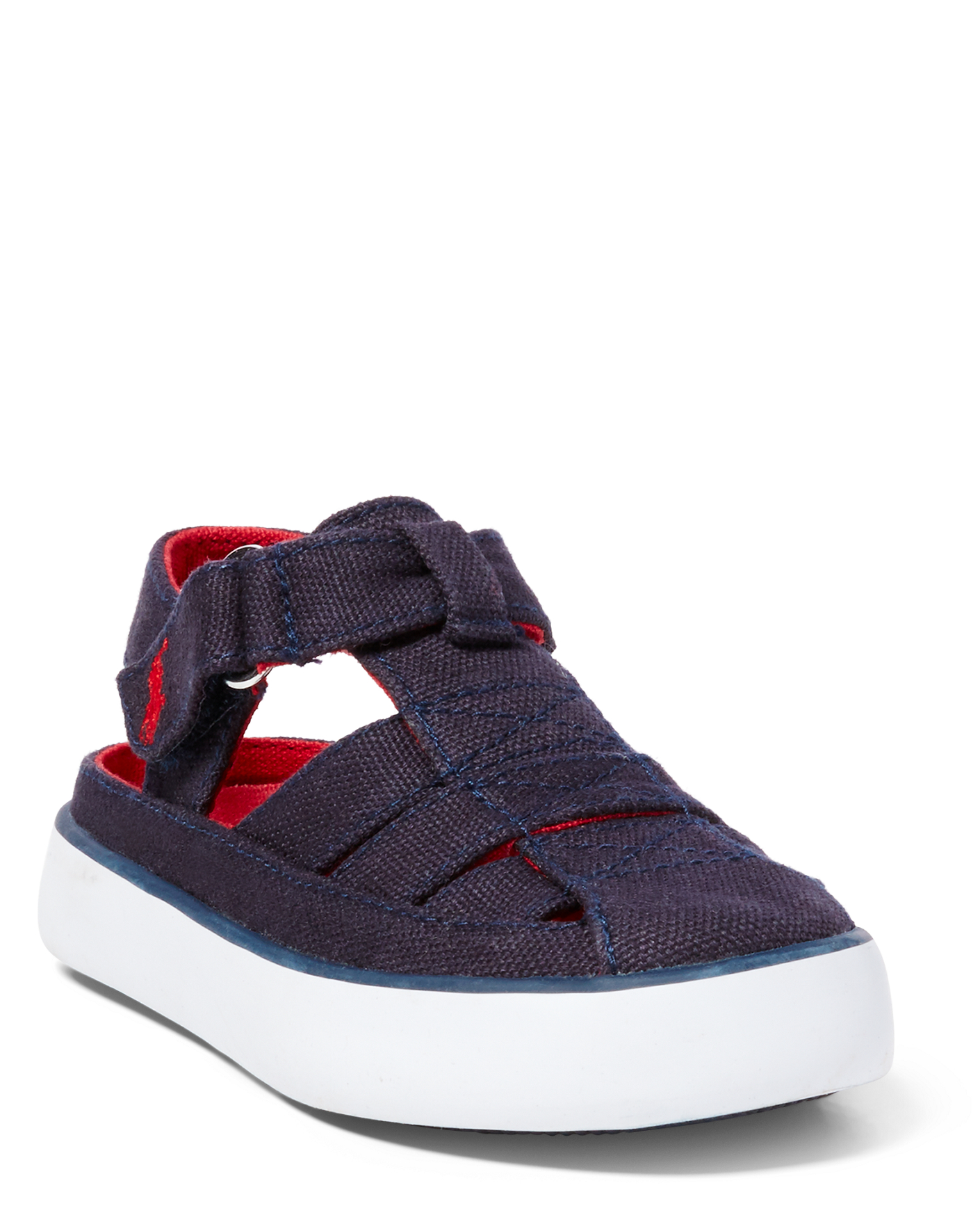 Details Rounded-toe silhouette. Hook-and-loop strap closure at the ankle ensures easy on and off. Padded insole. Textured rubber outsole. Rubber "Polo" tag at the heel. Our signature embroidered pony accents the strap. Canvas. Imported.