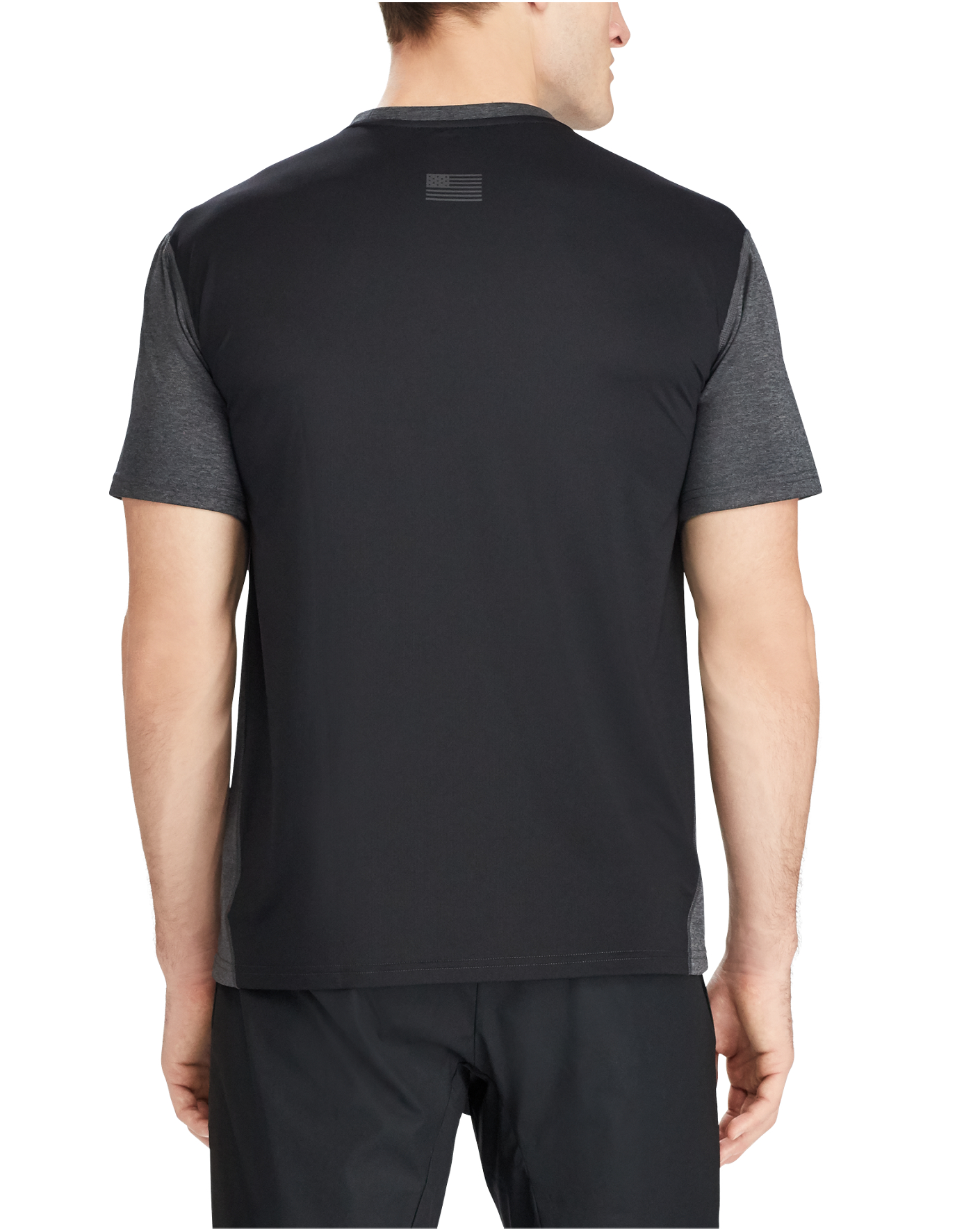 Details Classic Fit: our roomiest silhouette. Size Big 2X has a 30½" body length, a 22" shoulder, and a 28" chest. Size Tall 2L has a 32½" body length, a 22" shoulder, and a 28" chest. Crewneck. Historical American flag at the back of the neck. Short sleeves. "Polo USRL Performance" rubber-printed at the right sleeve. Mesh back panel Signature pony rubber-printed at the left chest. Shell: 100% polyester. Back panel: 92% polyester, 8% elastane. Machine washable. Imported.