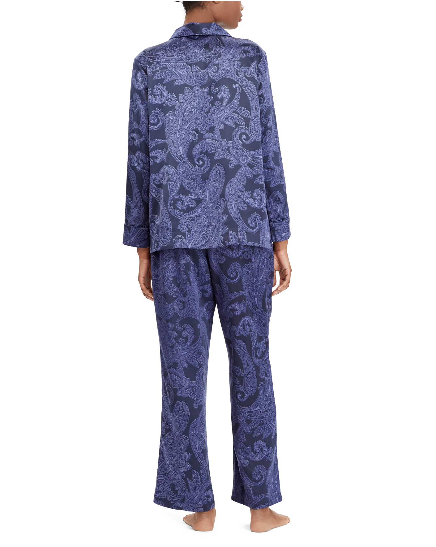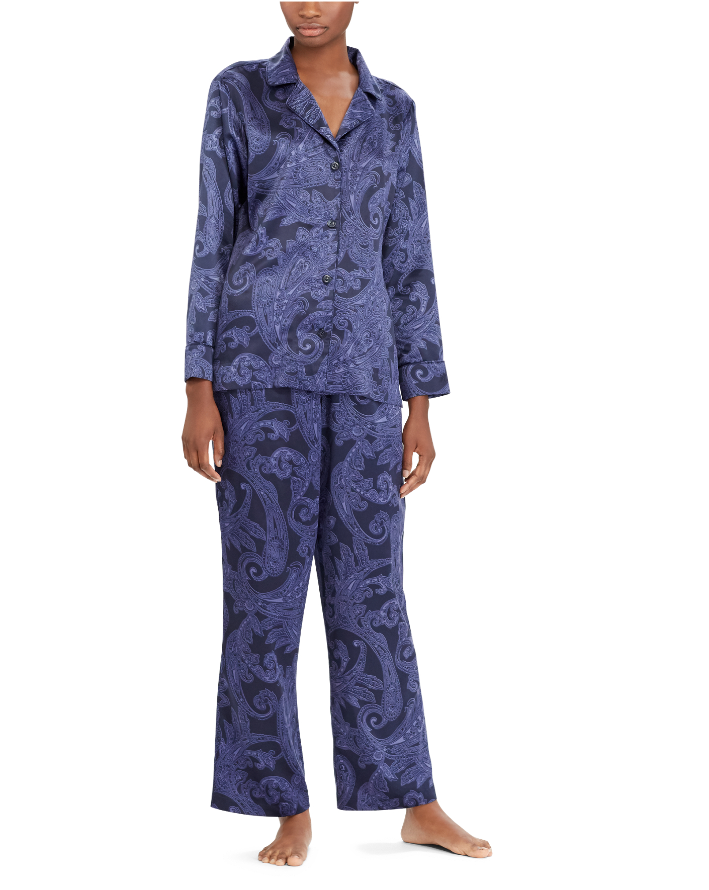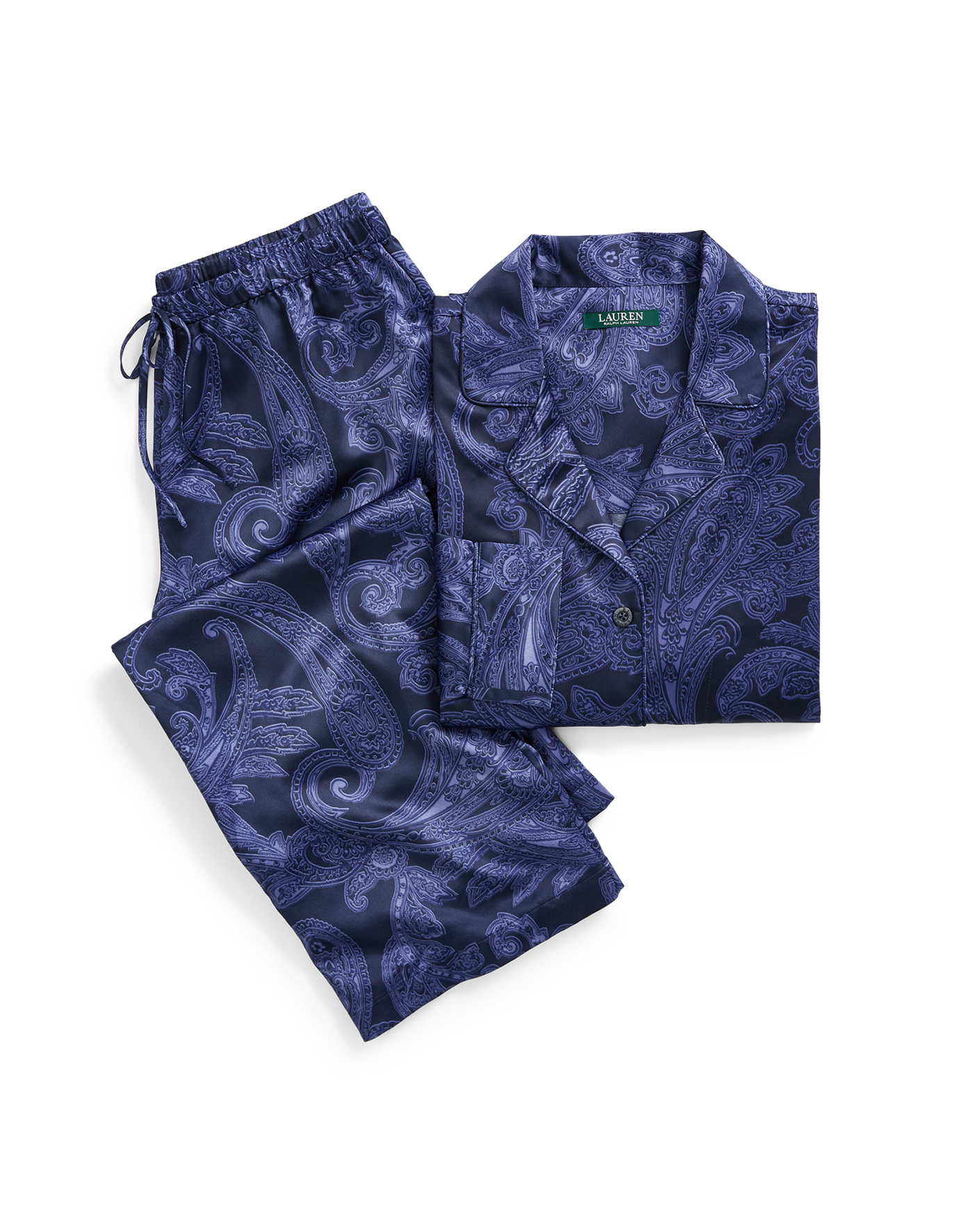 Details Shirt: notch lapels; buttoned placket; long sleeves; left chest patch pocket with "LRL" embroidery; shirttail hem. Pant: drawstring waist. Size medium shirt has a 27" body length. Size medium pant has a 30½" inseam. 100% polyester. Machine washable. Imported. Model is 5'10"/178 cm and has a 32" bust, a 24" waist, and 34" hips. She wears a size small.