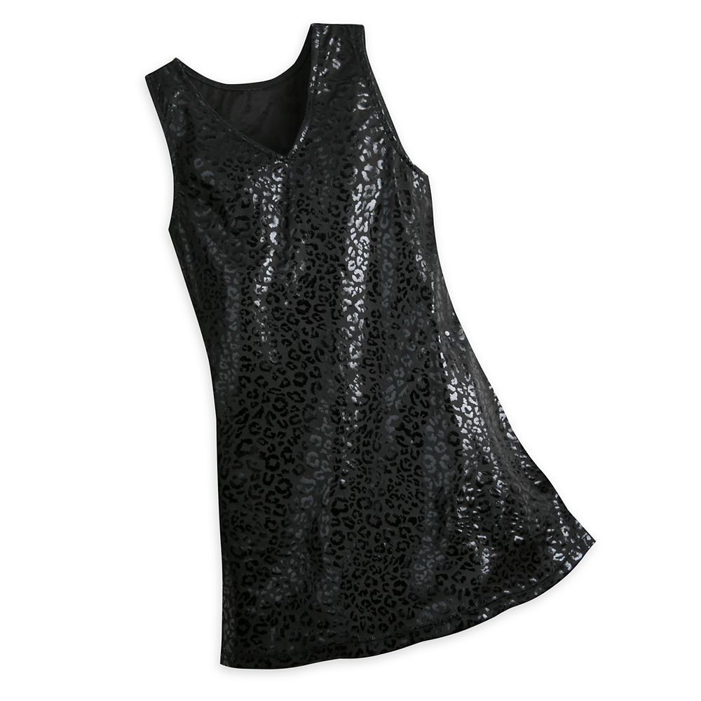 Magic in the details... Includes coat, dress, wig, and glovesWhite faux fur coat with red satin liningBlack sleeveless dress features allover glossy black animal printLong red satin gloves