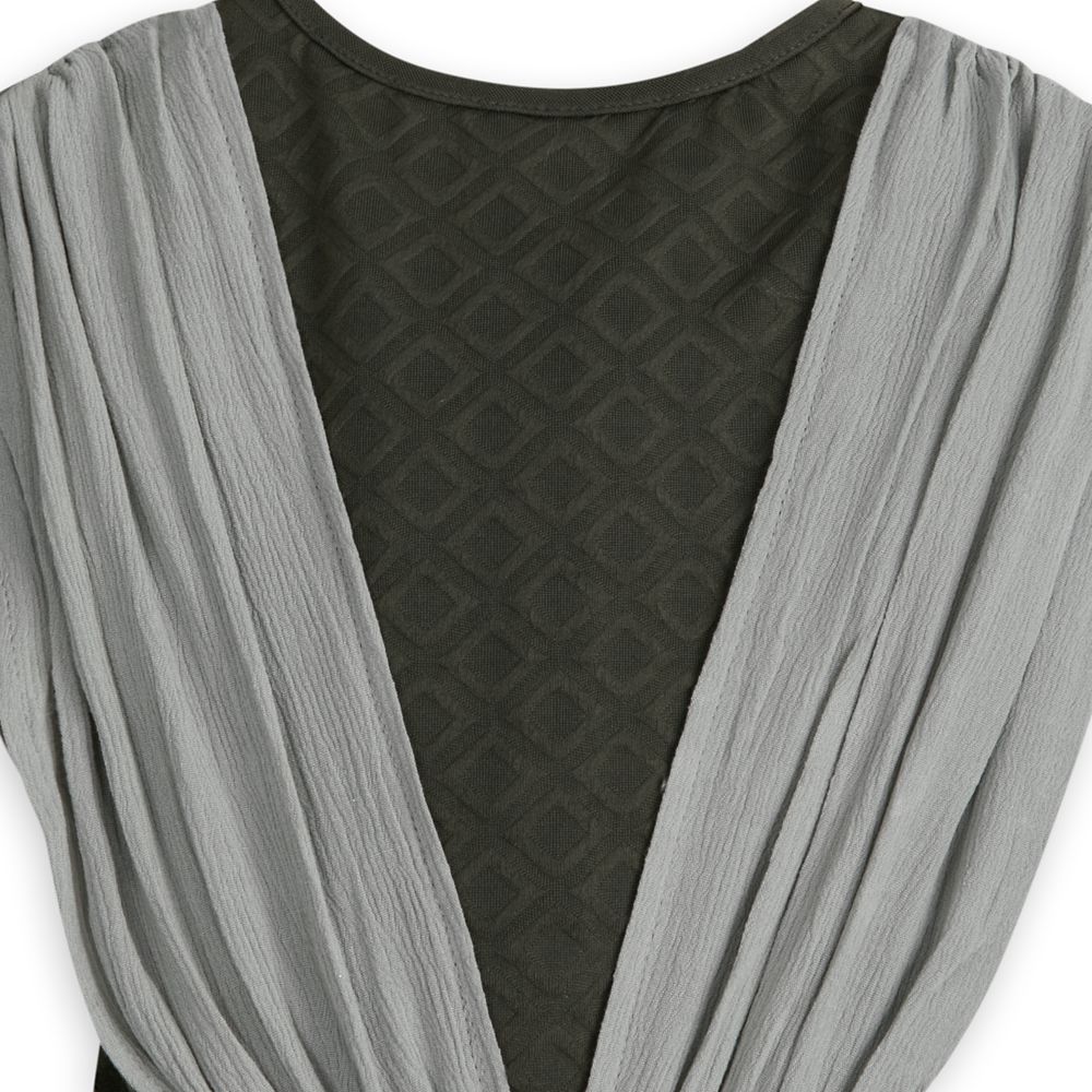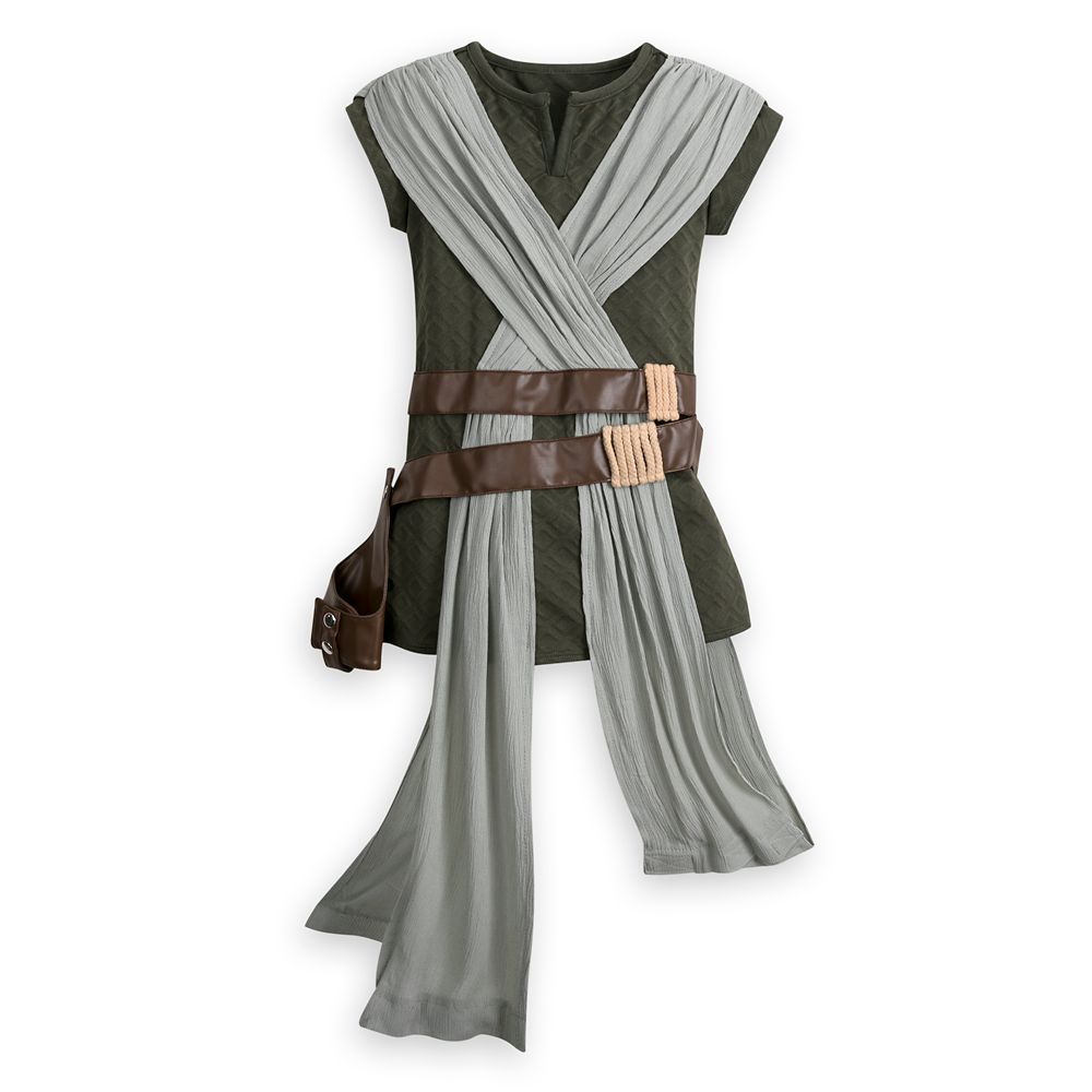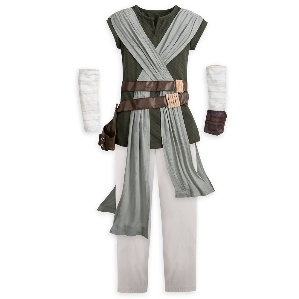 Magic in the details... Includes tunic, pants, attached belts, removable sleeves and wristbandDiamond-textured tunic features notched V at neckline, sleeveless crinkled gauze weave ''vest'' overlay (can be left loose or connected with self-stick fabric closure)Attached faux leather belts with corded ''rope'' accents, self-stick fabric closure straps and removable weapon holster with snap closuresRemovable sleeves feature screen art and mesh detailsLeft sleeve has removable printed faux leather wristband with self-stick fabric closureCoordinating elastic waist pants Inspired by Star Wars: The Last Jedi