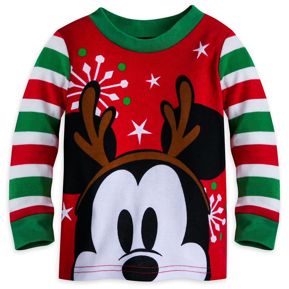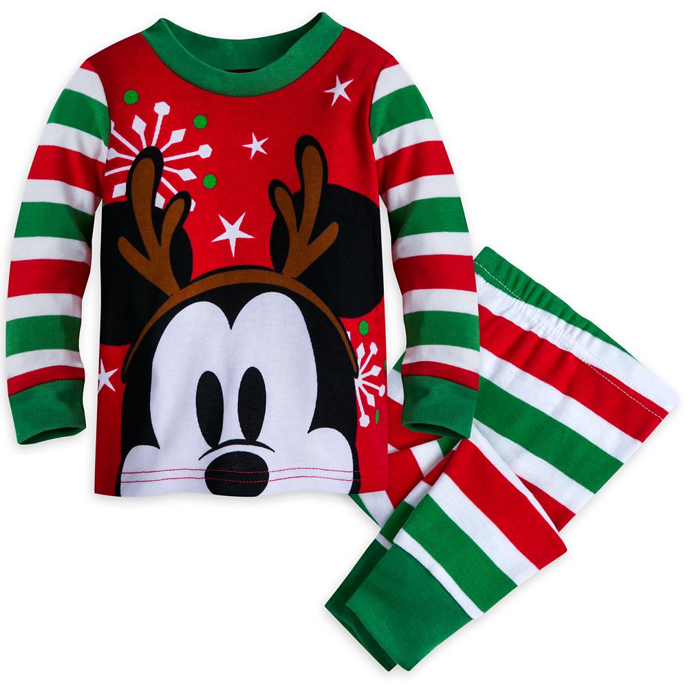 Magic in the details... Holiday Mickey designSoft cotton knitStriped long sleevesContrast ribbed crew neck and cuffsCoordinating elastic waistband pantsContrast ribbed pant cuffsPart of our Share the Magic Holiday Collection