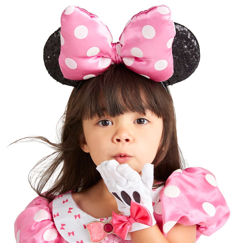 Magic in the details... Puffy pink satin bow with iridescent glitter polka dotsSoft foam mouse ears with sequined front and velour backSatin covered headbandNon-slip headband interiorCoordinates with our pink Minnie Mouse Costume, sold separately