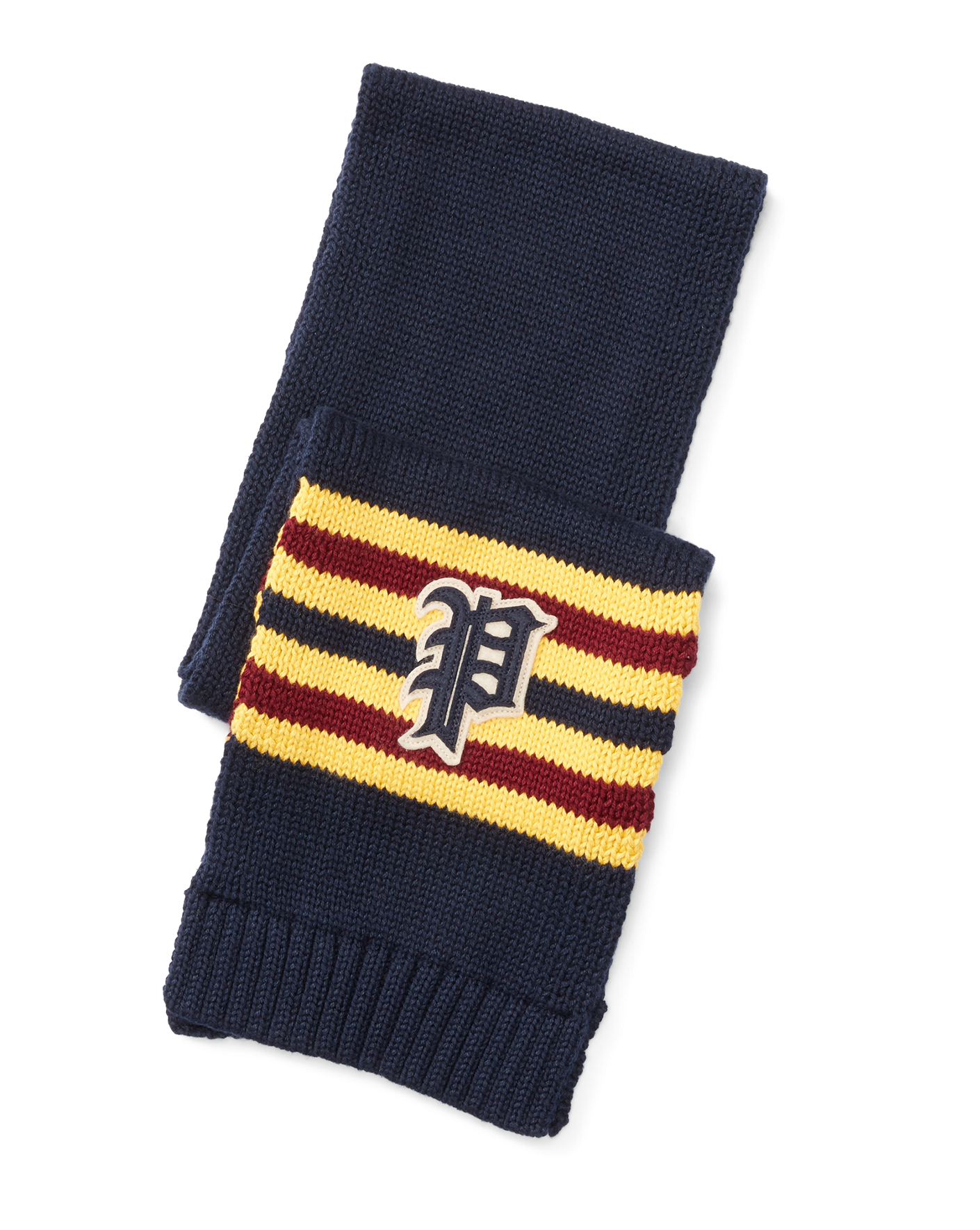 Details Rib-knit ends. "P" patch at one end. 44" L x 6" W. 100% cotton. Machine washable. Imported.