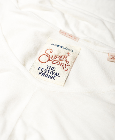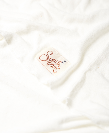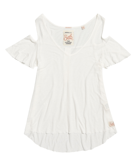 Superdry women’s Boho off the shoulder top. This off the shoulder top is loose fitting and features a low scoop neckline as well as dropped rounded hem. The Boho off the shoulder top is finished with a Superdry logo patch near the hem. Model wears: Small Model height: 5’11” (181cm)