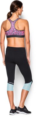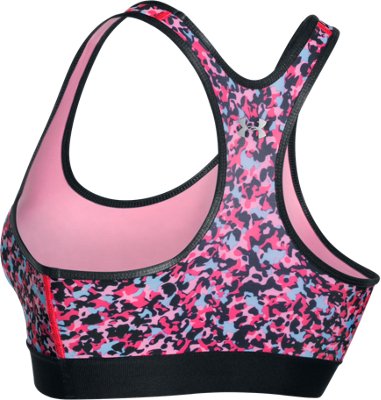 Best for A to C cupsDelivers strategic support, tailored for medium-impact activities like cycling, weight training & boxingClassic pullover style with racer back design for enhanced range of motion Super-soft jacquard elastic band delivers a custom, stay-put fitSuper-smooth, double-layer HeatGear® fabric delivers superior next-to-skin feel & lasting comfortSignature Moisture Transport System wicks sweat to keep you dry & lightLightweight, 4-way stretch construction improves mobility & maintains shapeAllover seasonal prints