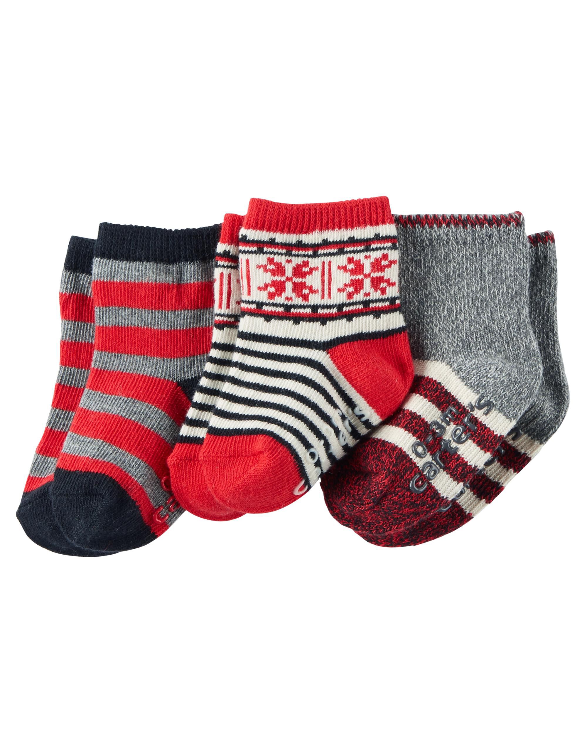 Mix and match with this 3-pack of crew socks. Crafted in a soft cotton blend and equipped with non-skid soles, these socks are perfect for lounging and playing! Style # V_CR03294 3-packSoft cotton blendNon-skid soles through size 0-4Printed crew socks