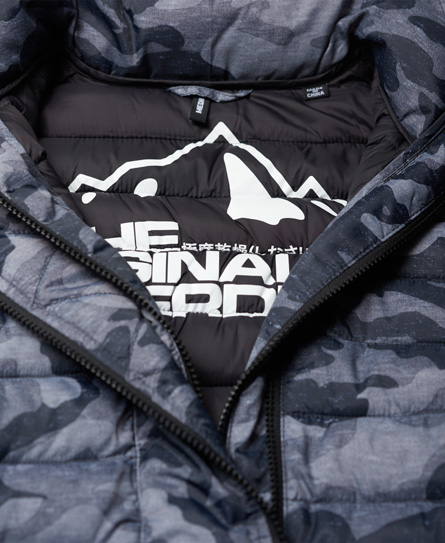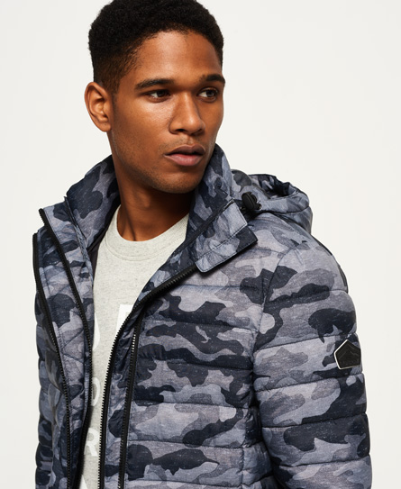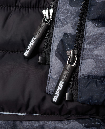 Superdry men’s printed Fuji double zip hooded jacket. This lightweight quilted jacket features a double layer zip fastening, an adjustable hood with bungee cord toggles and a padded collar. This Fuji jacket also has two external pockets with zip fastenings, two internal pockets and elasticated cuffs. This jacket is finished off with a Superdry logo badge on the sleeve and Superdry logo detailing on the zip pulls. Model wears: Medium Model height: 6’ 1” (185cm) Model chest size: 38" (96cm)