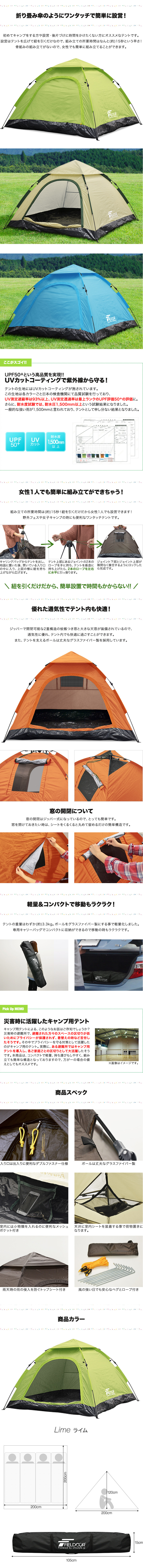 原文:大盛1★組立時間15秒! FIELDOOR スクエア型 ワンタッチ テント 【 4人用 / ライム 】 簡易テント ドームテント キャンプ アウトドア