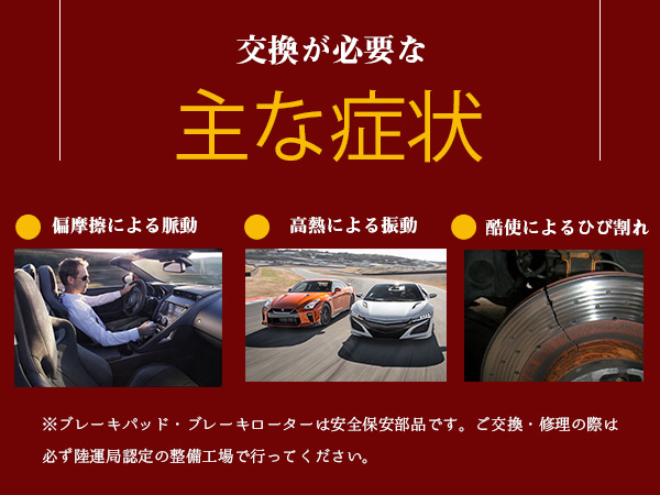 商 品 説 明交換目安:国産車の場合、フロントブレーキで10万km、リアブレーキで15万km