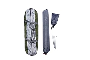 - 付属品: 本体×1、テントポール×2、ペグ×8、ロープ、テントポールバッグx1、ペグとロープ専用収納バッグx1、専用キャリーバッグ×1。